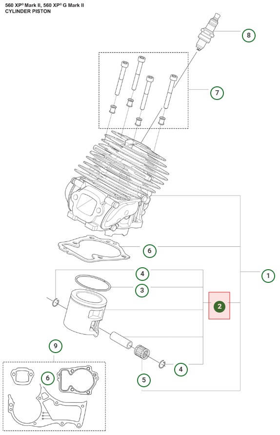 Piston Husqvarna 560 XPG Mark II, 562 XPG Mark II in the group  at Entreprenadbutiken (5461080-04)